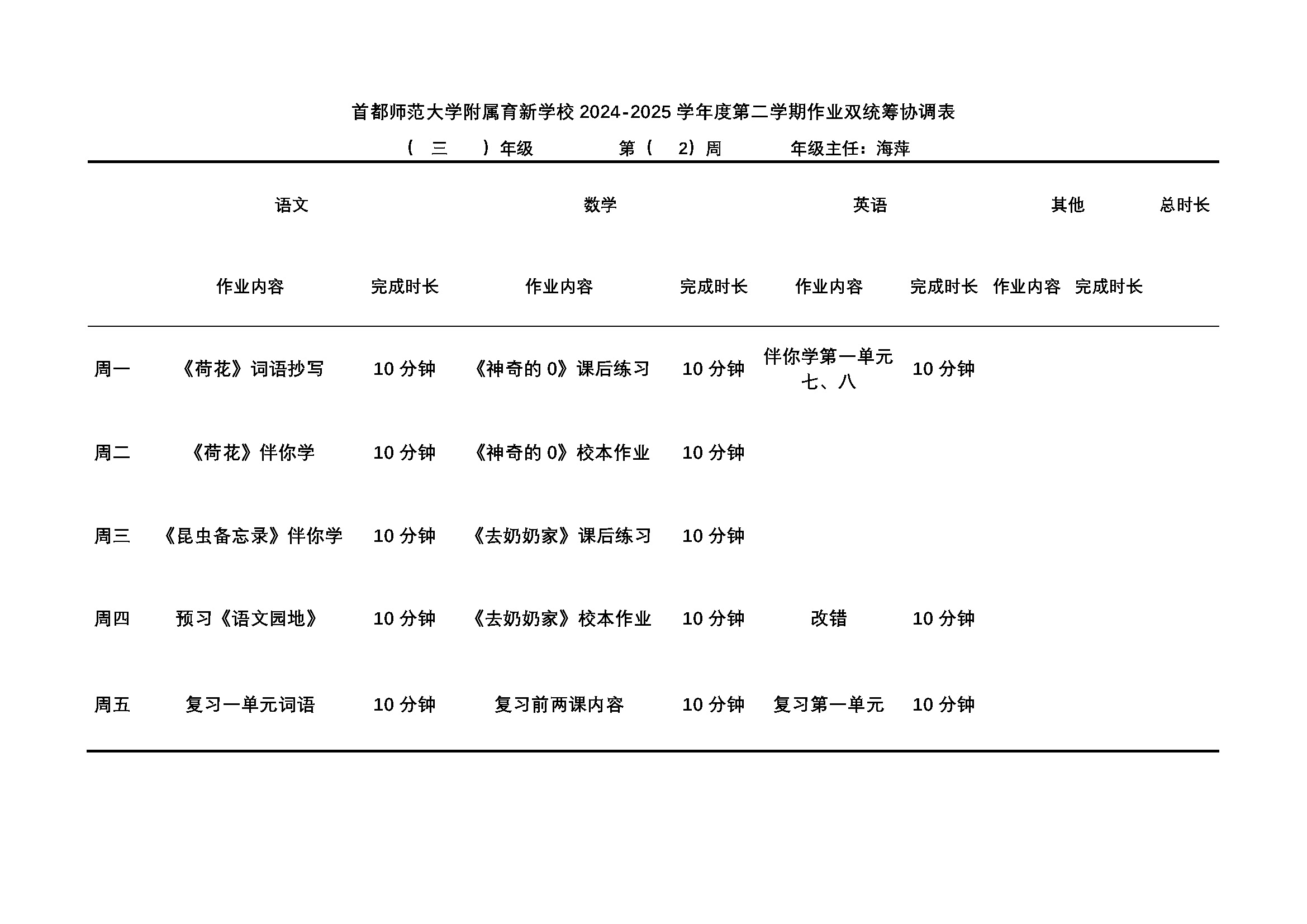 【作业公示】三-六年级年级第2周作业